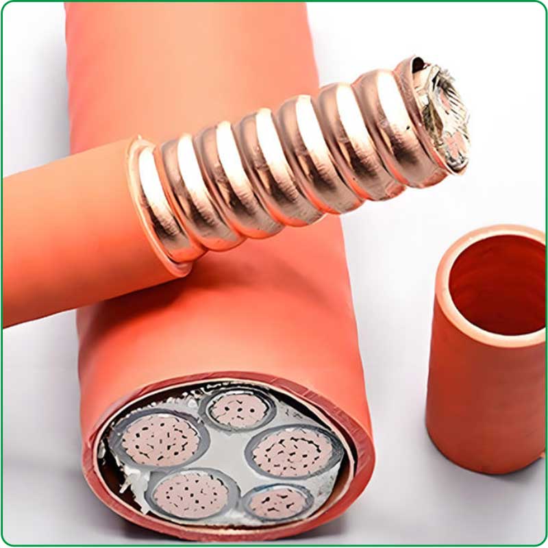 Sheath Structure: Inner Corrugated Seamless Copper Sheath + Outer LSZH (Low Smoke Zero Halogen) Polyolefin Sheath